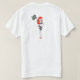 Peggy Pitstop com a bandeira checkered na parte de trás do t-shirt