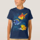 Aproveite esta camisa divertida de crianças com três peixes coloridos.