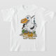 Camiseta Pelicano como pescador com cana de pesca e peixe