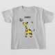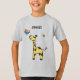 T-Shirt com girafa bonita em laranja-amarelo com uma ave e uma abelha. Você pode personalizar o nome, a fonte, o tamanho e o posicionamento, o texto é totalmente editável. Também é possível alterar o tamanho da imagem.