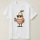 Uma pera de desenho animado na moda com óculos de sol sobredimensionados e de pé casualmente. Para adicionar uma reviravolta divertida.