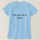 T azul com "você perdeu-me em "olá!"" na parte dianteira