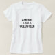Voluntariado, me pergunte que sou uma camiseta branca e negra voluntária. Texto preto personalizado em t-shirt de cor branca editável. Unissex. Disponível em muitas cores e opções de estilo. Design minimalista elegante. Excelente para um voluntário, centro comunitário, organização, ong, caridade, campanha, etc