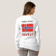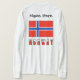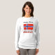A letra vermelha, com capa de neve, lê-se a NORUEGA sob esta bandeira norueguesa com fundo vermelho e azul escuro escandinavo, ou nórdico, Cruz. Acima é um lugar para adicionar seu nome para personalizar sua aparência. Ou adicione o nome de outra pessoa para um presente personalizado. A camiseta feminina personalizada e de manga longa é excelente para reuniões familiares norueguesas.