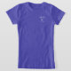 Camiseta personalizada de logo da escola de peixe. Logótipo pequeno no peito superior esquerdo, com texto de bloco branco rústico e ilustração escolar de peixe.