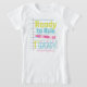 Quem está pronto para governar o primeiro ano? Sua garotinha pode vestir esse design rosa, verde e azul super fofo com letras coloridas impressas à mão em um papel colorido da escola com um lápis grande cor-de-rosa e um nome personalizado no fundo em uma fonte rosa divertida.