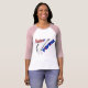 Camiseta feminina mangas raglan 3/4 da Bella+Canvas, Branco/Cor-de-rosa, Adulto P