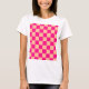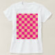 Quadrados marcados com cor-de-rosa quente padrão geométrico de cor-de-pêssego Shirt. As mulheres vestimentando o presente de camiseta para ela. Legal padrão quadrado geométrico verificado por retrô. Verificador moderno rosa-quente do azulejo Vintage.