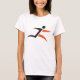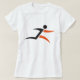 Um símbolo de ícone preto e laranja de uma pessoa em execução. Esta design parece muito eficaz nesta Camiseta das Mulheres