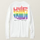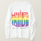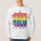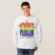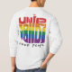 A t-shirt apresenta a mensagem "United Pride Proud Pessoas" num vibrante design multicolorido. Cada palavra é uma cor brilhante diferente, criando um olhar ousado e comemorativo. (Imagine as cores do arco-íris espalhadas pelo texto).