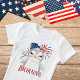 Pinguim Patriótico Bonito com gravata de cabelo vermelho, branco e azul de bandeira e fundo de fogo de artifício. Um presente perfeito para os amantes dos pinguins em sua vida. Celebre o Dia Memorial ou o Quarto de julho, ou vista-o a qualquer momento. Adicione o nome do seu filho ou diga na parte inferior para ter mais cudez. Pegue esta hoje e veja as outras t-shirts disponíveis na minha loja. Obrigado, J4F 😊