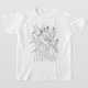 Camiseta do pássaro tui pintado por você. Aqui você tem a opção de desfrutar de um desenho original de um pássaro tui na sua camiseta ou usar tintas para tecidos para colori-lo à sua maneira.