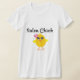 T-shirt, botões e produtos do pintinho da salsa com o pintinho amarelo bonito que indica uma flor em sua cabeça e em seu passatempo favorito. O divertimento a vestir-se e faz o grande presente.