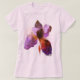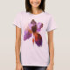 Camiseta Flor Iris Siberiana Chic, com pintura original artística rosa, roxa, vermelha e violeta.