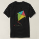 Kite design mostra uma pipa desenhada manualmente voando no ar com cores geométricas, cauda de pipa e fitas. Para fãs voadores de pipa.