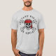 Crânio engraçado vestindo bandana vermelha, ossos cruzados e slogan: "Pirata instantânea - apenas adicione rum". Pirata/camisa de festa.