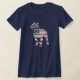 A silhueta do terrier de Staffordshire americano/pitbull encheu-se com o vermelho, branco e azul, bandeira dos Estados Unidos da bandeira americana. Este t-shirt das senhoras faz um grande presente para a mulher patriótica que ama esta raça do cão de funcionamento. Também disponível nos tamanhos para homens e crianças.