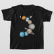De cima para baixo: Mercúrio, Vênus, Terra com Lua, Marte, Júpiter, Saturno, Urano, Netuno.