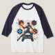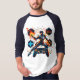 Camiseta Básica, Mangas Raglan 3/4, Branco/Preto, Adulto G