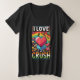 A design de camiseta para "I Love My Crush" apresenta um tema lúdico e romântico com letras arrojadas e vibrantes. A frase "I Love" é escrita em uma fonte grande, atraente, com a palavra "Crush" em um estilo diferente, possivelmente com um símbolo cardíaco ou embelezamentos lúdicos. As cores brilhantes como vermelho ou rosa para os elementos cardíacos contrastam com o fundo, fazer-o como design divertido e jovem. O olhar geral é relâmpago, perfeito para expressar afeto com um toque de capricho.