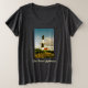 Manga longa T apresentando uma fotografia do farol da Ilha de Fogo contra um céu ouro por sol. Adição perfeita para jogar para aquelas manhãs cedo ou tarde na praia! O Farol da Ilha do Fogo está localizado no extremo oeste desta ilha de barreira, ao largo da costa sul de Long Island.