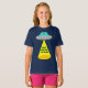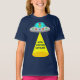 Esta incrível camisa de Natal para crianças apresenta uma imagem de arte digital de uma espaçonave de alienígena decorada com luzes de Natal brilhantes e coloridas. Dentro o OVNI olhando pela janela há uma alienígena verde com olhos pretos vestindo um chapéu festivo de Santa. Há um cone de luz vindo do disco voador. A sombra de uma mensagem está sendo projetada para a Terra. A mensagem é personalizável para que você possa personalizá-la com seu próprio texto. Cartões de natal do espaço exterior para todos os terremotos.