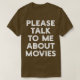 Por favor, fale comigo sobre filmes. Engraçado, Família, Esportes, Música, Educação, Animais, Empregos, Nomes, Gráfico, Camisetas, Camisa Engraçada, Vintage, Feriados, Presentes, Festas, souvenir, orgulho, férias, presente de roupa de roupas para Dia de os pais, Natal, Aniversário, Graduação, Halloween, 4 de julho, Reembolso. Dia do Patrick, Ação de Graças.