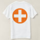 branco mais o sinal ou cruz em um círculo alaranjado. O design é repetido na parte dianteira e na parte traseira. Contudo pode ser personalizado. Também disponível em outras cores.