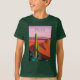 Este design é um poster contemporâneo com uma expressão gráfica simples da paisagem do deserto no vermelho, no rosa e no roxo mornos com o cacto do saguaro no primeiro plano. A abreviatura "PHX" do texto aparece no auge do poster e da "arizona" no tipo branco pequeno no fundo.