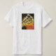 Um t-shirt curto da luva para homens com um poster soviético da propaganda do estilo antigo que caracteriza a palavra CCCP, o emblema do martelo e da foice da URSS e de uma cidade com os bombardeiros que voam em cima.