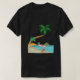 Uma cena de praia serena com uma palmeira ao lado de uma cadeira confortável, convidando o relaxamento sob o sol.