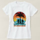 design retrô de pôr do sol da Praia Sul da Flórida com palmeiras, ondas grandes, surfistas, surfe.