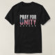 Camiseta Patriótica PRAY FOR UNITY, com a palavra UNITY combinada com a bandeira Stars and Stripes dos EUA. Esta frase foi tornada popular durante a campanha presidencial dos EUA em 2024, mas também pode ser usada para o Dia Nacional de Oração, que acontece em maio. 2024 versão personalizável disponível separadamente. Também em branco. Comprar correspondente à Camisa Unity para o seu grupo vestir em campanhas presidenciais e conferências.