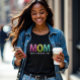 Mostre a mamãe o quanto ela significa para você com este design moderno e artístico. Apresentando "MOM" em um padrão geométrico impressionante, multicolorido (tons de rosa, amarelo e ciano/teal) e a saudação "Dia de as mães feliz". As linhas vivas e cores vibrantes criam um olhar contemporâneo que ela vai amar. Um presente perfeito e na moda para a mãe no seu dia especial - excelente para roupa, acessórios ou decoração. Personalize-o com a sua própria mensagem.