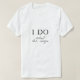 Camiseta de compromisso preta e branca super fofa com 'EU FAÇO' em tipo serif elegante, seguido por 'o que ela diz' em tipografia moderna e manuscrita. Esta é a versão para o Sr. para combinar com a versão da Sra. que diz 'Eu faço' e tem um diamante que transforma o 'o' em um anel de compromisso — dê uma olhada em nossa loja Zazzle se quiser comprar o par para o casal feliz! Copyright Elegant Invites, todos os direitos reservados.