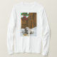 Linda arte de Natal de Goldendoodle. O filhote de Goldendoodle espera na varanda coberta de neve para que Papais noeis cheguem, guardando cookies de Papais noeis. Presentes de Natal maravilhosos, cartões de Natal, postagem, roupa e muito mais.