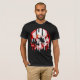 O crânio preto, vermelho e branco derrete afastado.