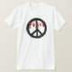 Um símbolo de paz preto e um texto vermelho que diga simplesmente a "paz" em t-shirt da promoção da paz, em etiquetas, em mousepads, em canecas, em botões, e em outros artigos da paz que você pode personalizar com seu próprio texto ou um nome!