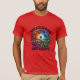 A design de camiseta apresenta uma imagem vibrante e colorida de uma árvore florescente com a frase "Primaveras da riqueza da esperança" escrita em um roteiro elegante embaixo. A design transmite uma mensagem de otimismo e abundância, lembrando ao utente que a esperança é a base para alcançar o sucesso e a prosperidade.
