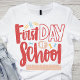 Celebre o entusiasmo de um novo ano escolar com esta vibrante T-Shirt "Primeiro Dia da Escola". A design apresenta uma alegre inscrição vermelha com sotaques lúdicos de clipes de papel, pinos de pranchas e uma régua, capturando a essência dos suprimentos escolares e a antecipação de um novo começo. Perfeito para estudantes, professores e pais, esta camiseta é uma forma deliciosa de marcar o início da jornada acadêmica. Vista orgulhosamente no primeiro dia para espalhar alegria e entusiasmo enquanto você entra na sala de aula.