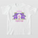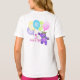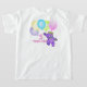 Ursos roxos de pelúcia vestidos com adoráveis coroas amarelas e flores cor-de-rosa, azuis e verdes, dançando entre as flores e segurando um punhado de balões coloridos com a palavra FELIZ. Esta camisa de aniversário de 5 anos trará um sorriso a uma garota especial no seu aniversário de 5. Personalize com o nome dela para torná-lo especial. Design original do Anura Design Studio.