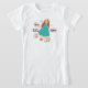 Uma menina de cabelos castanhos com um bonito vestido azul e uma coroa princesa com um fundo de flores cor-de-rosa sobre novas camisetas irmãs, botões, sacos de tote, correntes-chave, cartões, diários, travesseiros, etiquetas de bagagem, relógios de parede e outros itens que a nova irmã mais velha adorará possuir!