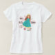Uma menina de cabelos castanhos com um bonito vestido azul e uma coroa princesa com um fundo de flores cor-de-rosa sobre novas camisetas irmãs, botões, sacos de tote, correntes-chave, cartões, diários, travesseiros, etiquetas de bagagem, relógios de parede e outros itens que a nova irmã mais velha adorará possuir!