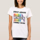 Inicie o ano letivo com cores vibrantes e um espírito criativo com esta camiseta personalizável feita especialmente para professores do primeiro ano. O design apresenta uma colorida fileira de lápis de cor e um texto divertido em estilo retrô que diz “First Grade Scribble Squad” (Tropa do Rabisco do Primeiro Ano). Modifique este design adicionando o nome de um professor ou o nome de uma equipe para dar um toque pessoal. Perfeito para eventos de volta às aulas, fotos de equipe ou da turma, ou simplesmente para mostrar seu orgulho escolar, este design celebra a bagunça colorida do primeiro ano da maneira mais encantadora.