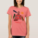 Um professor camisa com uma cena escolar que parece ter sido colorida por uma criança com giz em vermelho, amarelo, azul e verde que rodeia a ilustração. A escola é vermelha com ilustrações da grama, uma nuvem, e o destaque da design. O texto vermelho diz "Professora". O verso apresenta um giz vermelho solteiro. Personalize com seu nome em creyon. Procure itens correspondentes na categoria "Crayons" da Escola Rosa.