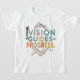Para a design de camiseta "Vision Guides Progress", imagine uma imagem poderosa de um olho humano no centro, irradiando luz ou energia que simboliza a visão e a clareza. O olho está rodeado por sutis formas geométricas, representando inovação, crescimento e movimento à frente. A design também inclui linhas elegantes e fluentes que se esticam para fora, guiando a atenção do espectador para frente, simbolizando o progresso e a jornada pela frente. O tema geral captura como a visão conduz ao progresso, equilibrando a criatividade com o propósito em uma estética moderna e minimalista.