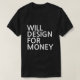 O design engraçado da camisa do texto da tipografia com texto "projetará para o dinheiro" escrito no branco sobre a camisa preta. Você pode mudar o estilo da camisa e colori-lo enquanto você gosta. É uma grande camisa para artistas se profissional ou hobbyist.