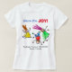Esta camisa bonito caracteriza um trio da figura colorida crianças da vara da aguarela que funcionam, saltando, e fazendo um handstand. O texto acima diz a "parte a ALEGRIA" no vermelho azul e brilhante. Está abaixo o texto preto que você pode facilmente personalizar para anunciar seu próprio negócio relativo criança. Aperfeiçoe para uma pré-escolar, escola primária, ou o negócio do centro de dia, entre outros. Alegre e divertimento!