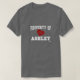 Propriedade de Ashley! É seu nome Ashley? Você tem um marido, um namorado, um membro da família masculino ou um amigo do homem que você considere ser sua "propriedade"? Em caso afirmativo, esta "propriedade" da camisa é exatamente o presente que você está procurando! As características de design "propriedade de" na rotulação branca na parte superior, em um coração vermelho com abraços & beijos (XOXO) no meio, e em "Ashley" na rotulação branca na parte inferior.