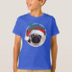 Pug do Natal - t-shirt básico do Hanes dos miúdos dos azuis marinhos. Inclui a escrita, "Feliz Natal". Xmas da feliz a tudo!